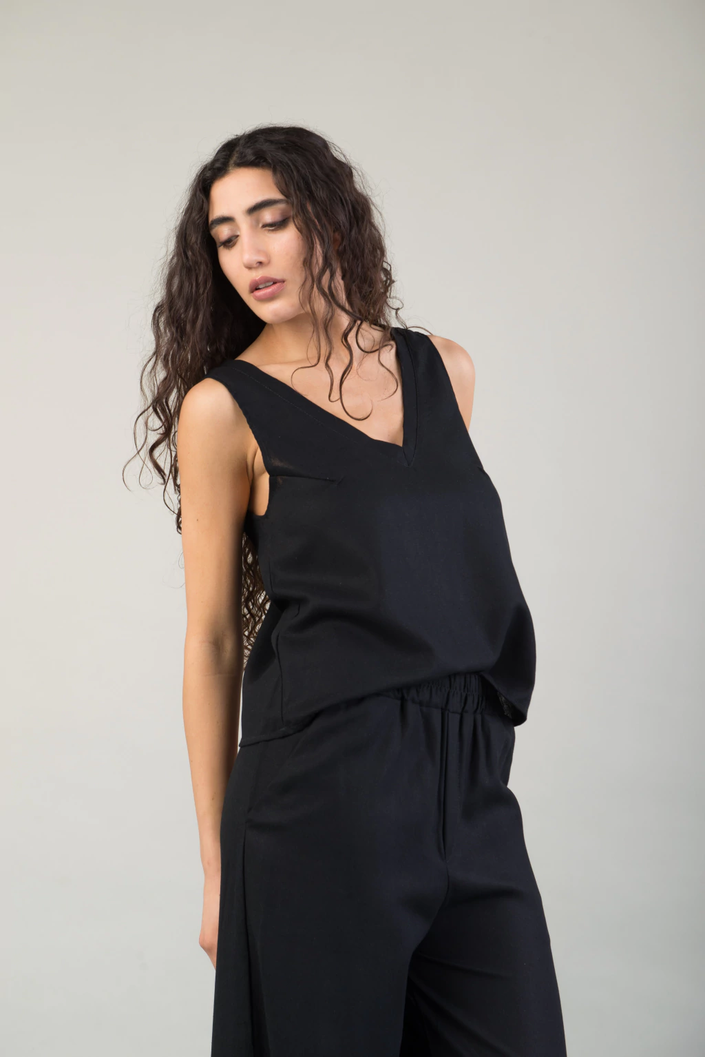 Blusa confeccionado en lino color negro. La tela tiene muy linda caída y es fresca.