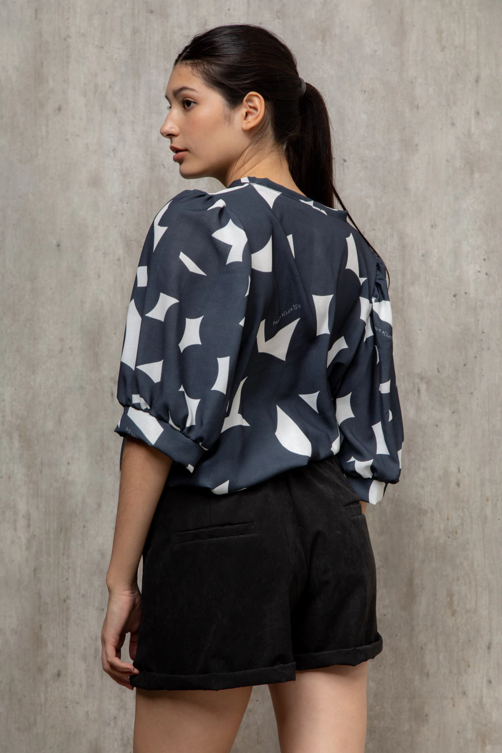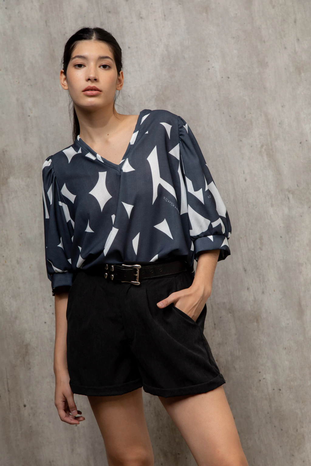 Short confeccionado con sastrero vintage gamuzado color negro. Tiene botón, cierre y bolsillos en la parte delantera. Es estilo sastrero. En la parte de atrás de la cintura tiene elástico lo que permite que se estire más la cintura se adapte mejor y sea más cómodo.