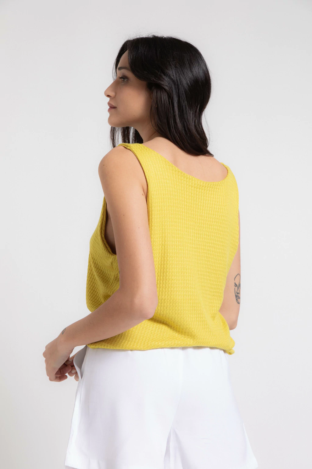 Short confeccionado en tela sastrera color blanco, tiene bolsillos y elástico en la cintura, podes completar tu look con el Top Minerva Blanco o con nuestro Chaleco Eólica.