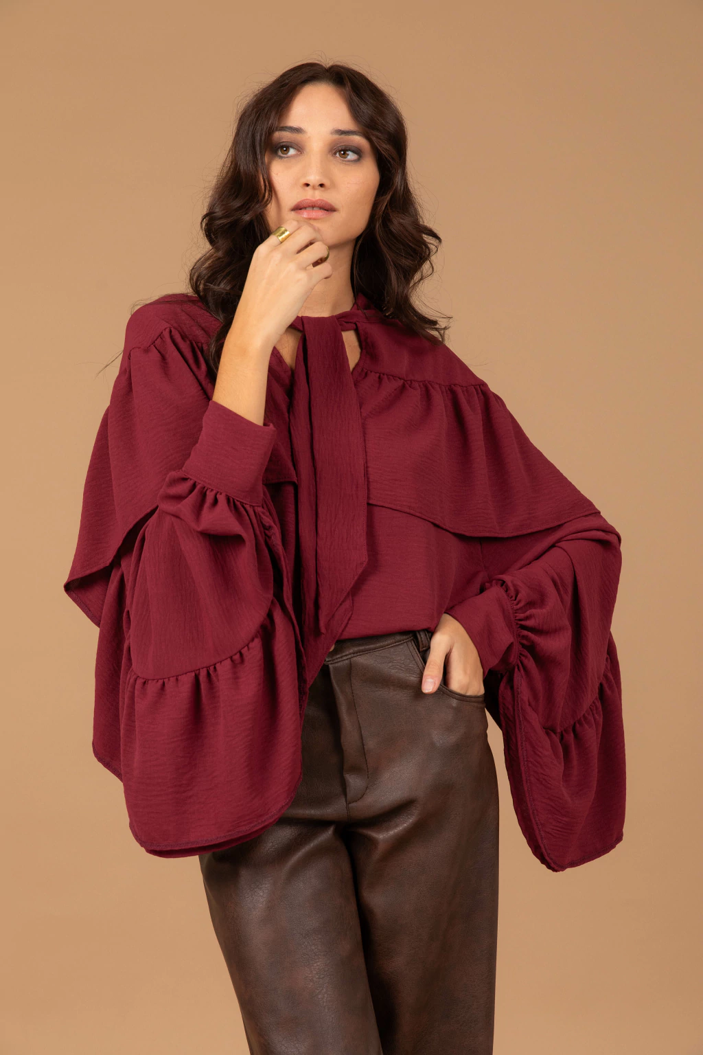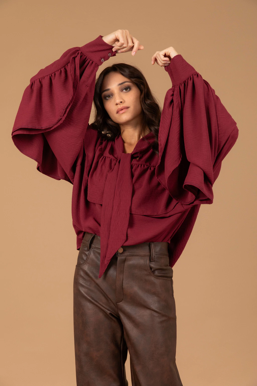 Nuestra camisa de creep de seda increible!! Color cherry, el color de la temporada se destaca por su elegancia.