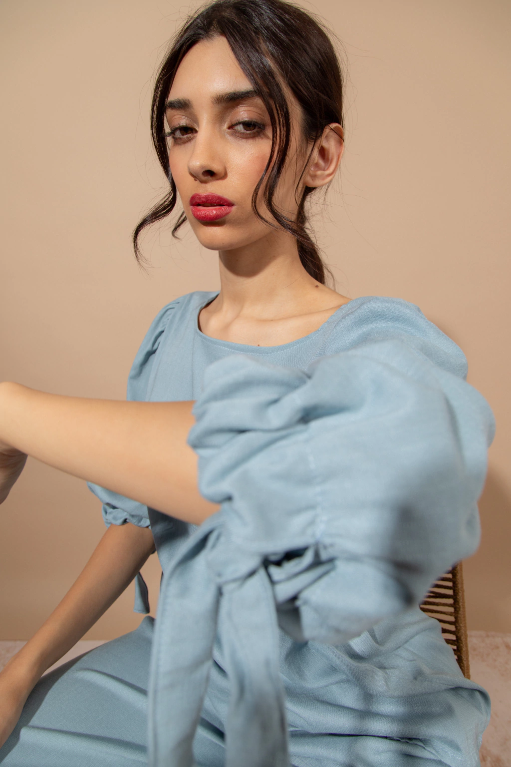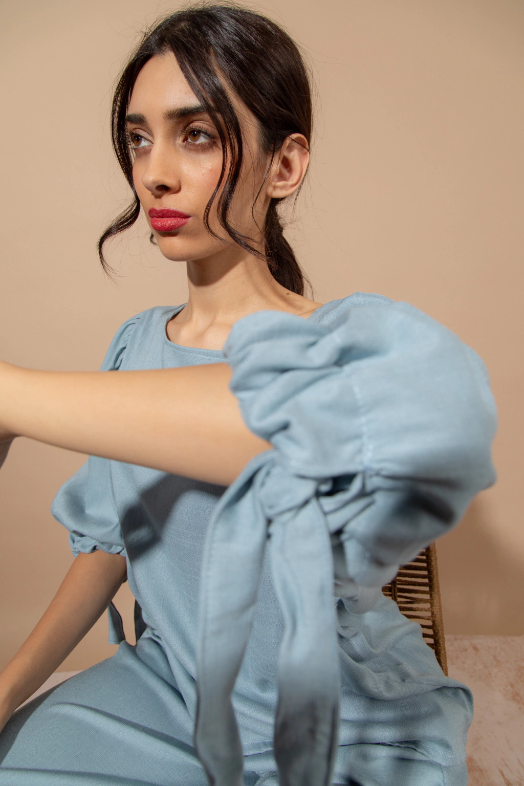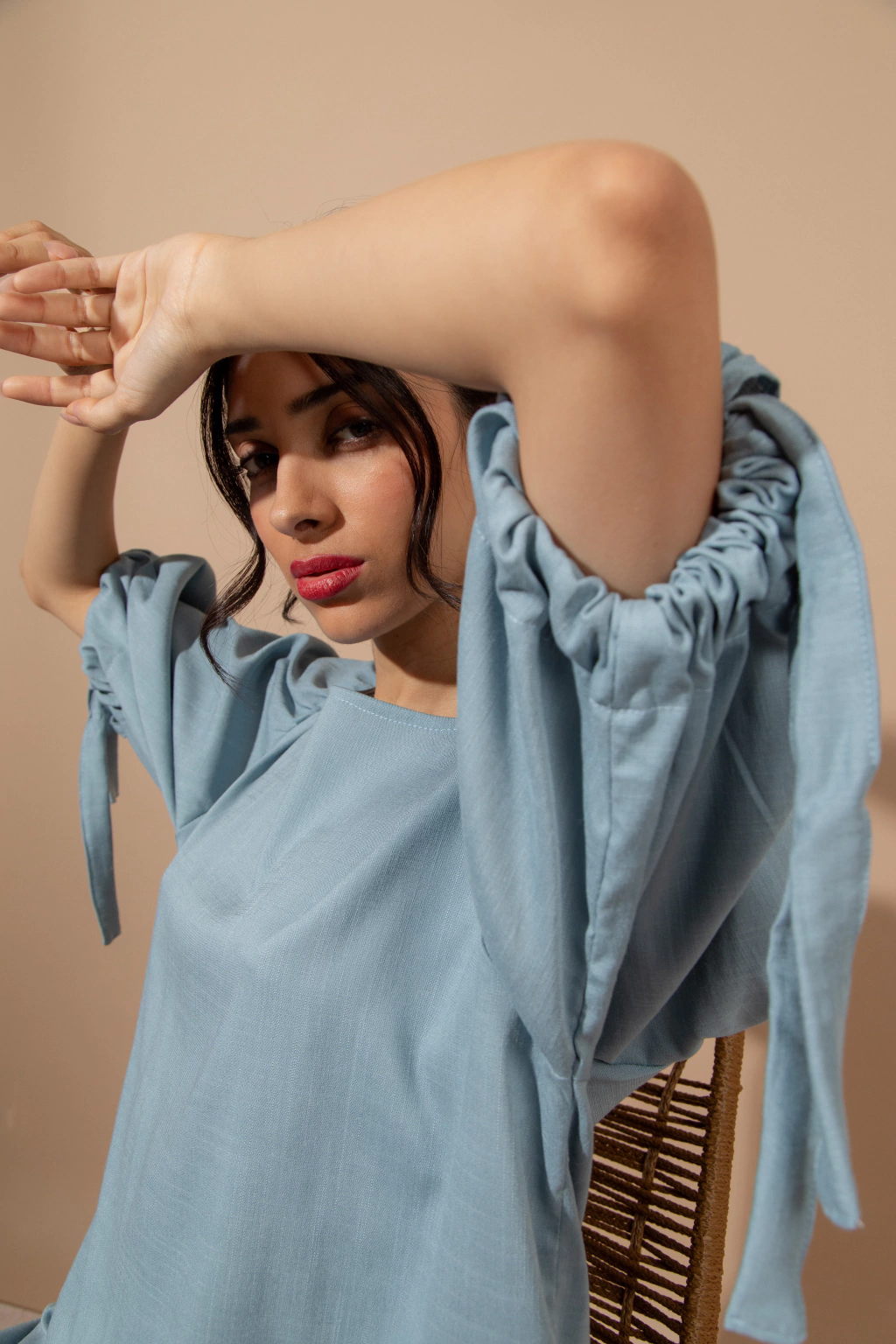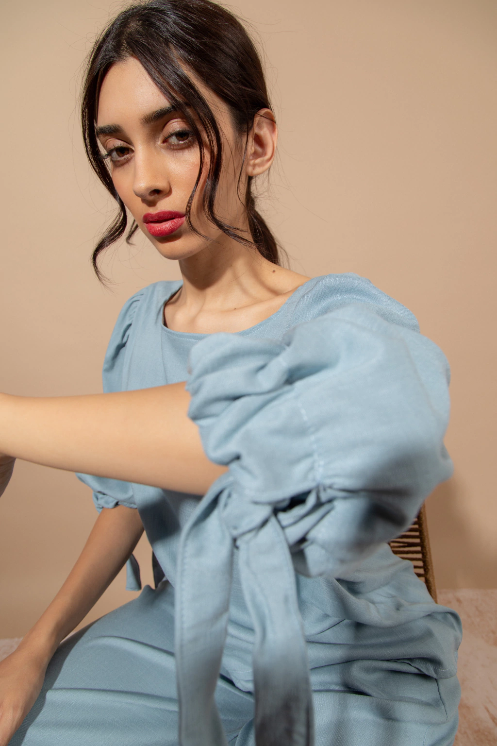 Blusa Bahia Celeste: Blusa de lino elastizado color celeste, con mangas amplias con lazo en el piño. Podes combinarlo con el pantalon wide leg Bahia o usarla con cualquier otra prenda ya que aporta comodidad,frecura y estilo.
