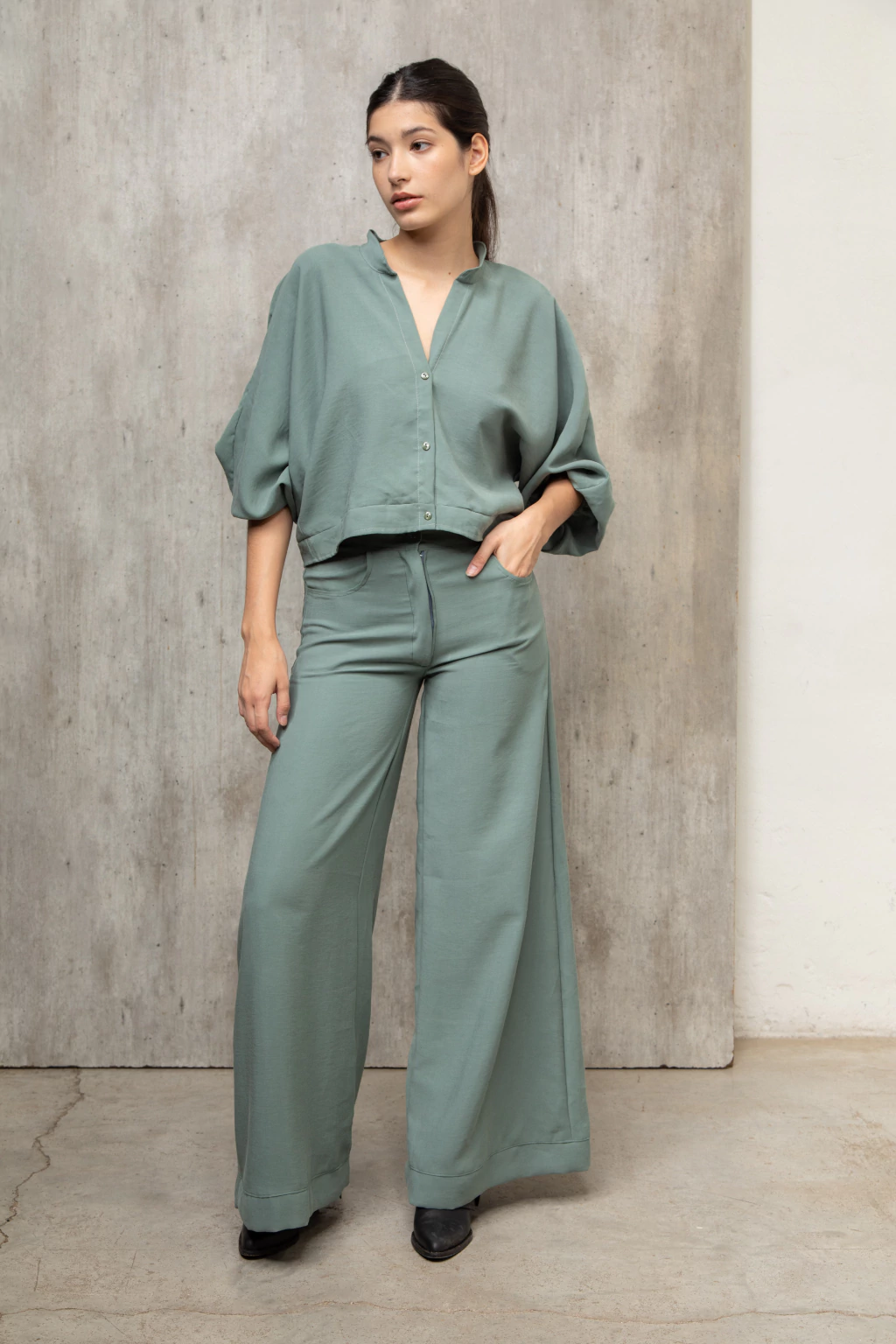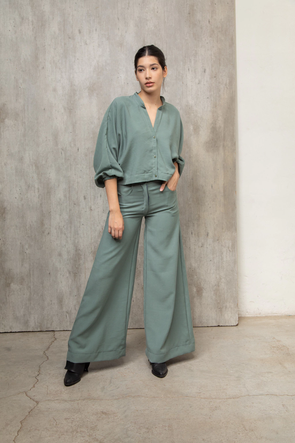 Nuestra blusa camisera limonero está confeccionada en sastrero malva, es una tela tela con mucha caída y suave. Tiene escote en V y botones. Tiene manga caída y manga mancha con elástico en el puño. Es una prenda super cómoda y versátil. Se puede usar con nuestro pantalón limonero para usar en set o con cualquier otra prenda. la amamos!