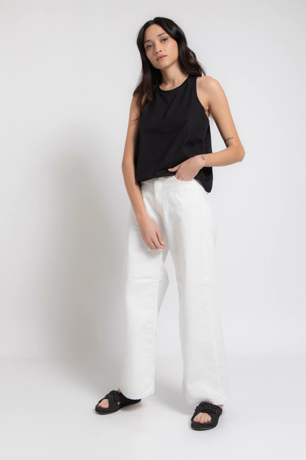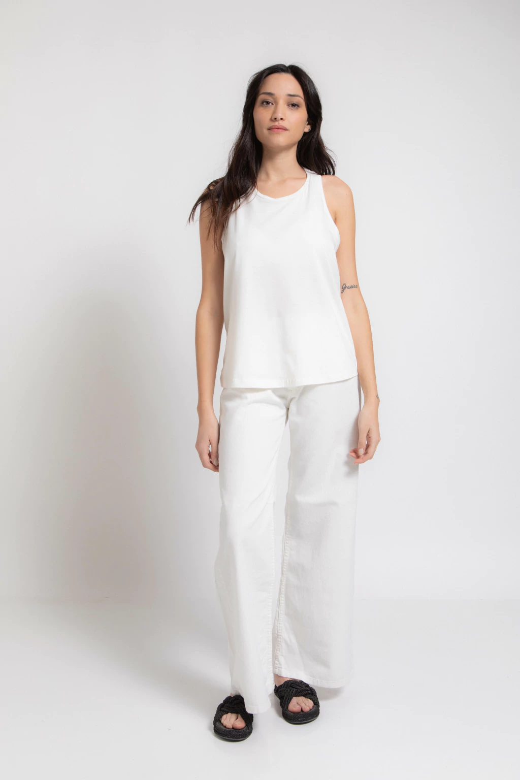 Confeccionado en lona denim 100%. Tiene una amplitud que potencia la comodidad de la prenda.