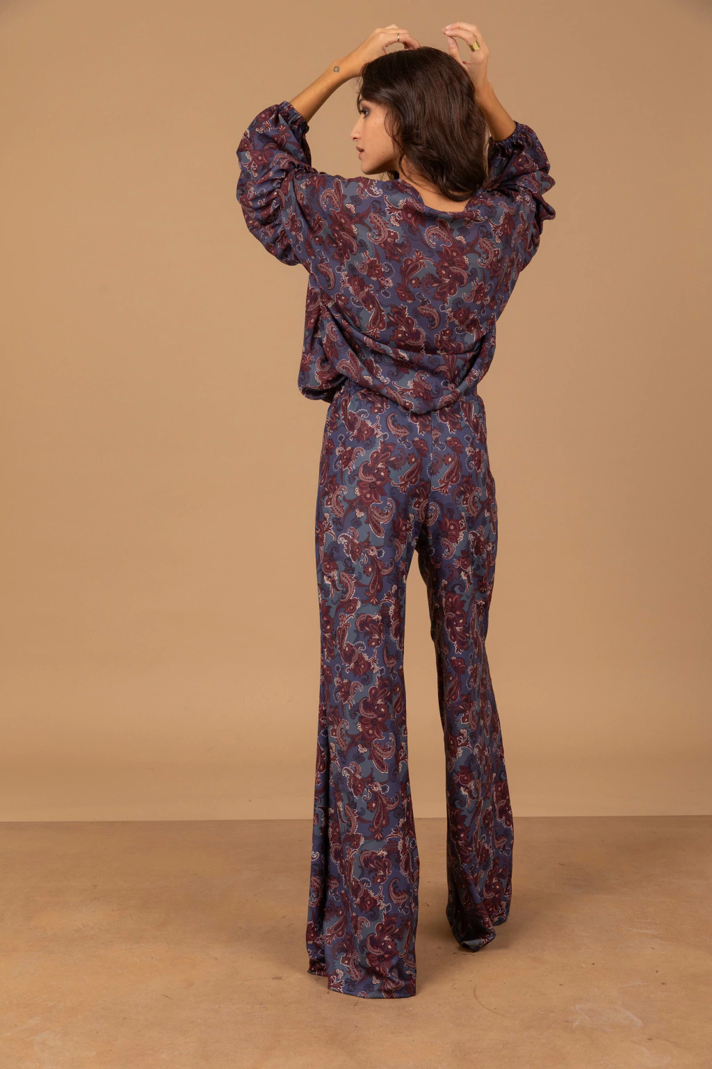 Pantalón: - T1: Contorno Cintura: 70 cm (sin elastizar) - Largo: 102 cm - T2: Cintura: 74 cm (sin elástizar) - Largo: 104 cm T.3 Contorno cintura: 78 cm (sin elastizar) Largo 106 cm