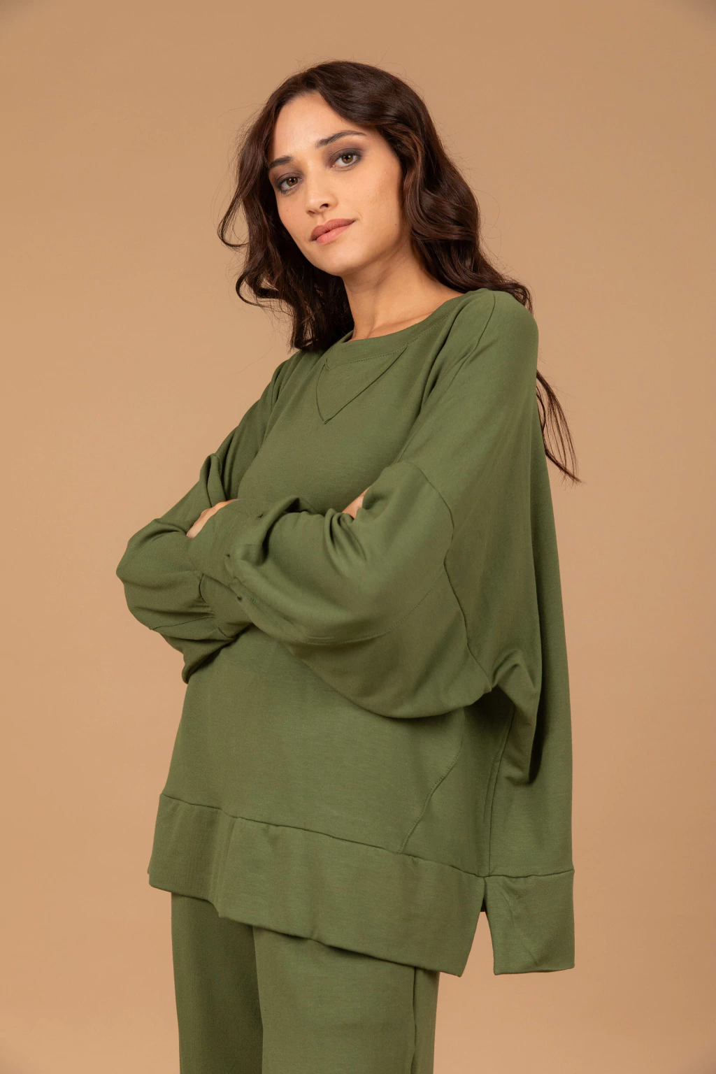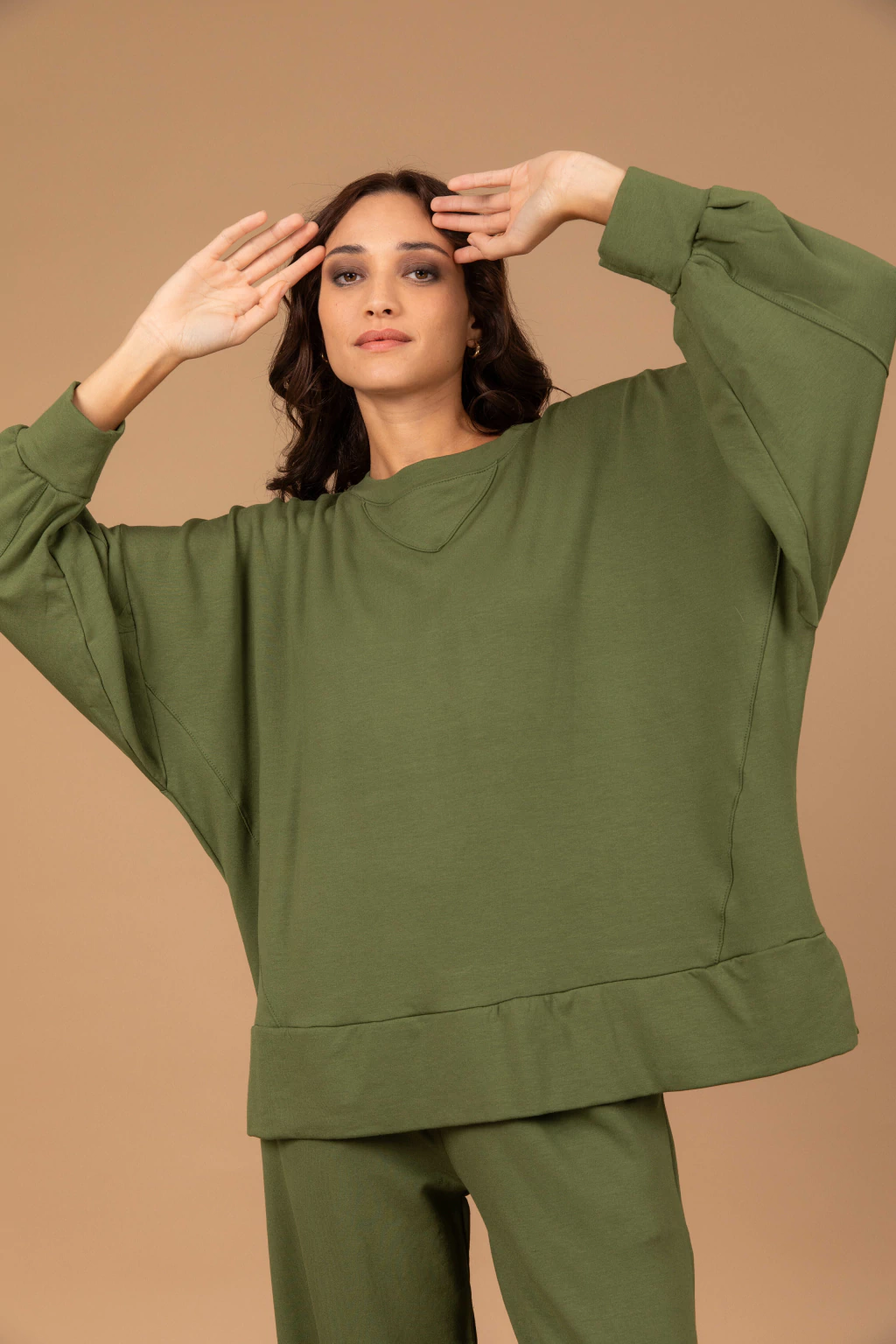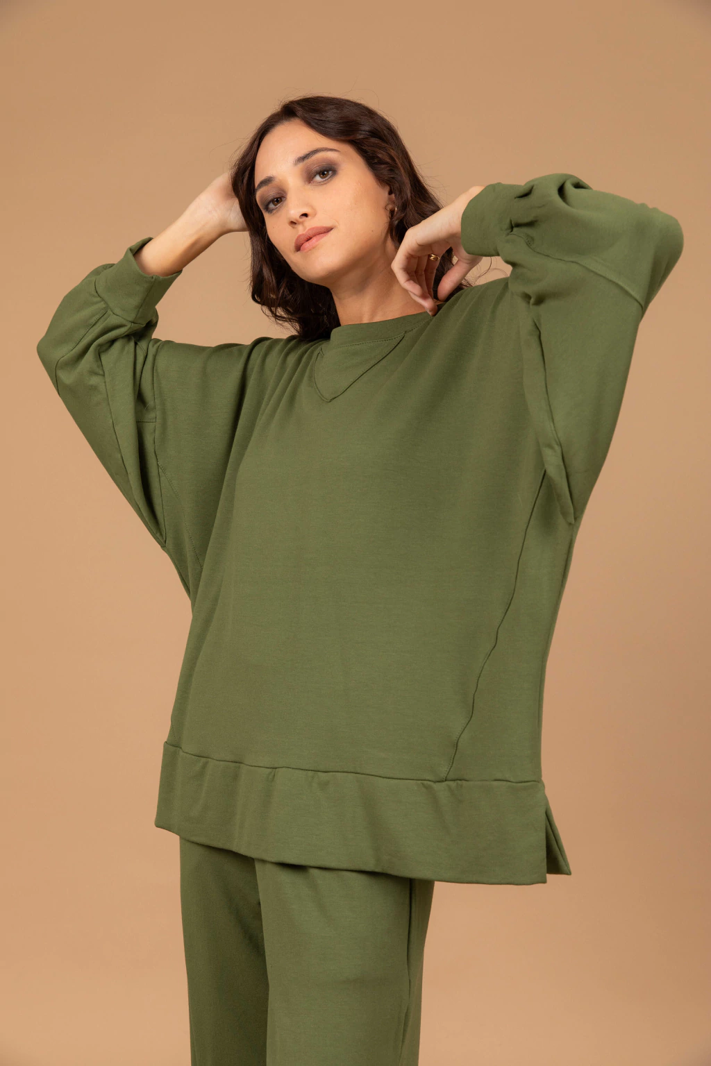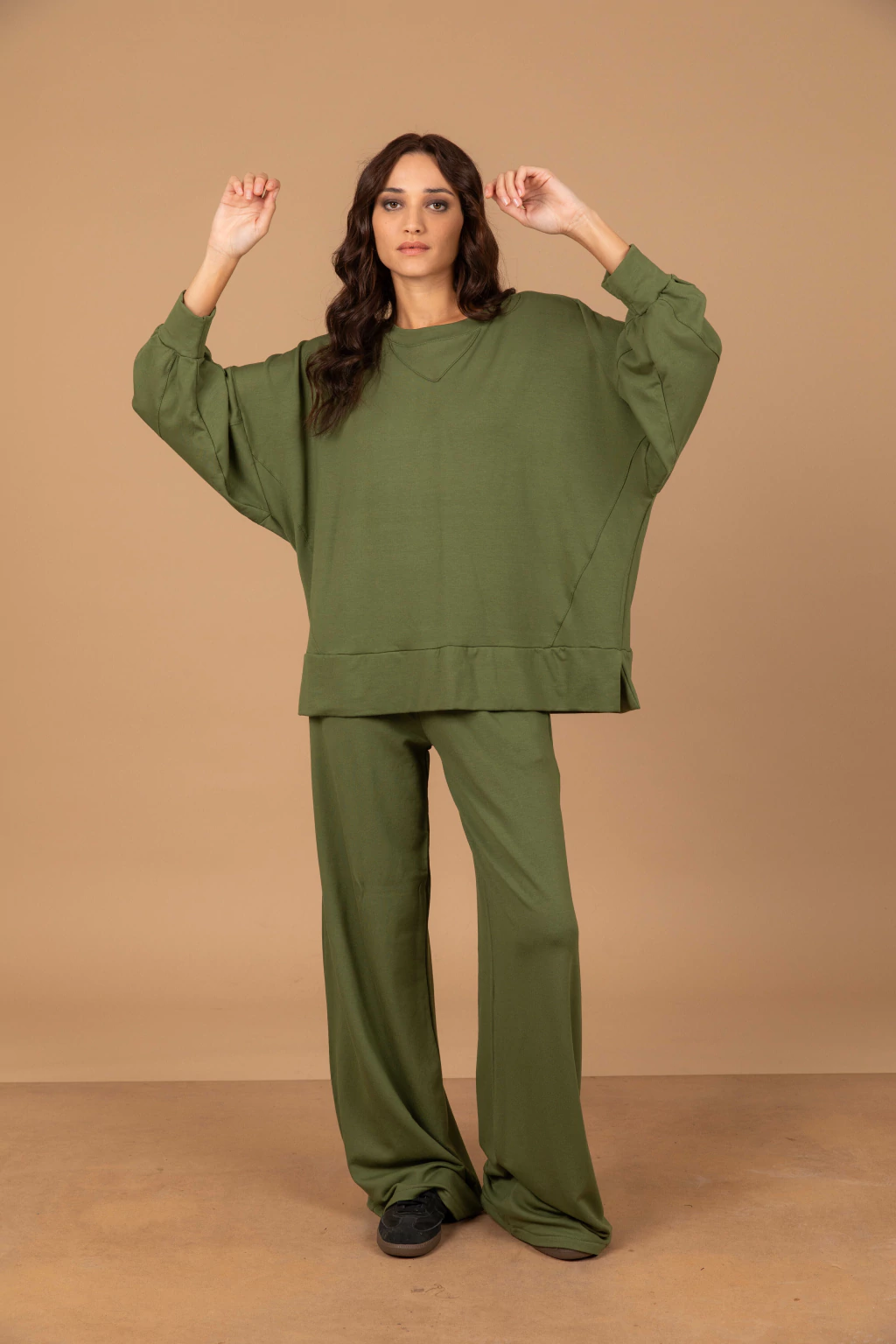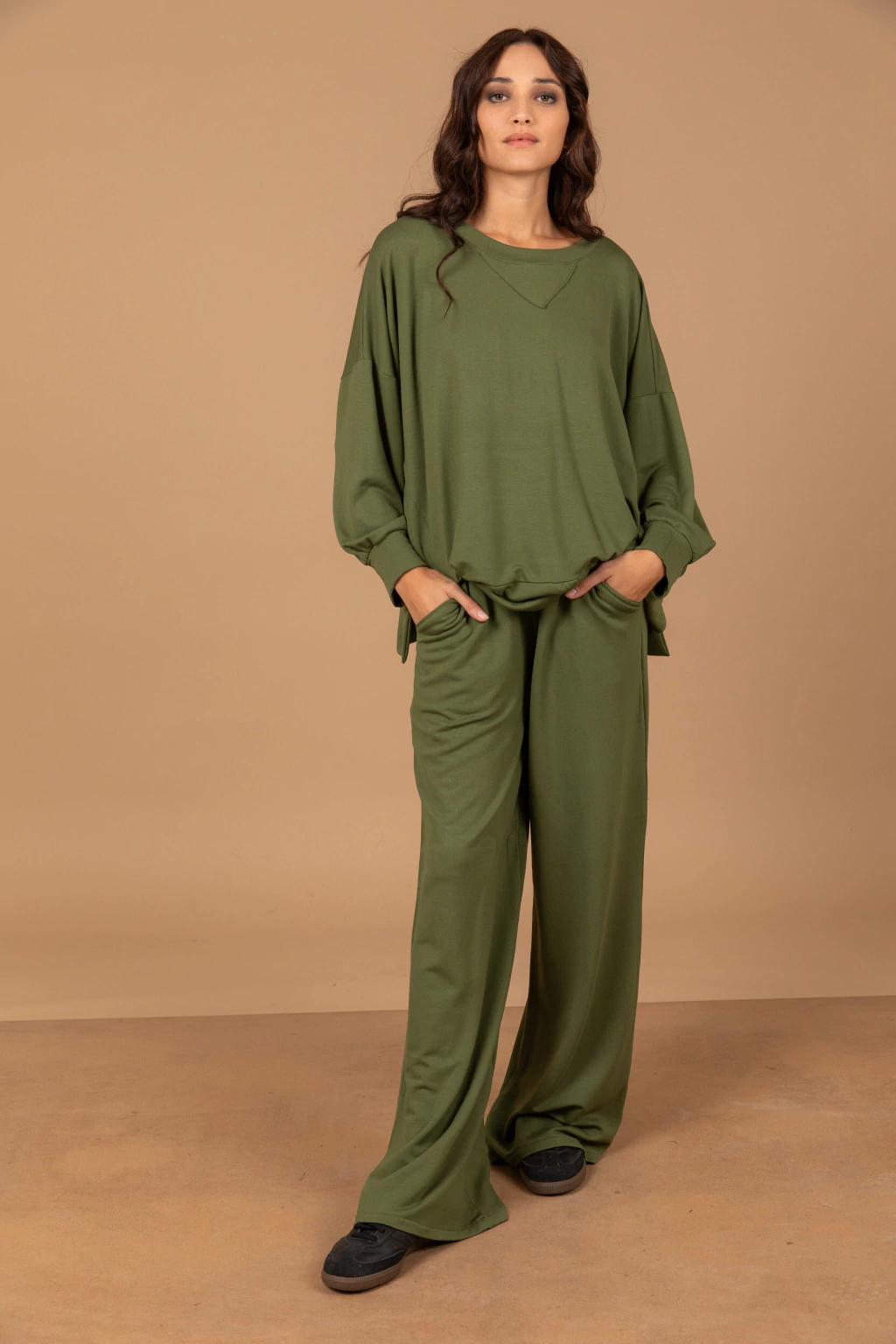 El pantalón verde matcha está diseñado para brindarte comodidad y estilo. La tela rústica frizada te abraza suavemente, mientras que el pantalón tiene bolsillos laterales que se adaptan a tu figura.