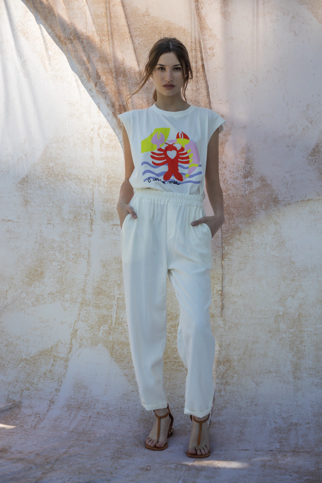 Pantalón en tela sastrera off white con bolsillos en la parte delantera y elástico en la cintura, lo que permite que se estire más, se adapte mejor y sea más cómodo. Lo podes usar con alguna de nuestra remeras con estampa, zapatillas para un look mas urbano o con la Camisa mas formal.