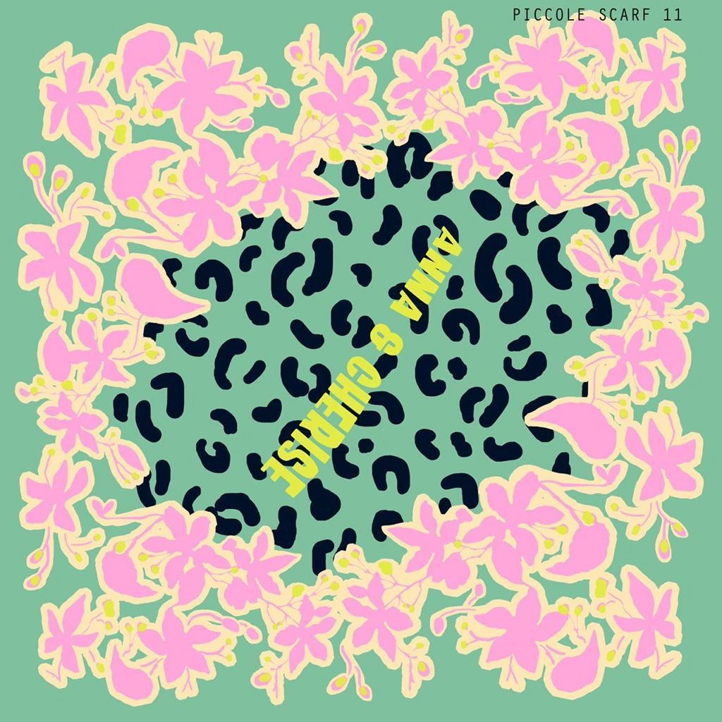 Pañuelo de seda estampa propia, medidas 55x55cm.