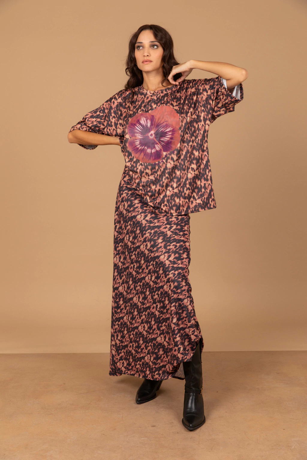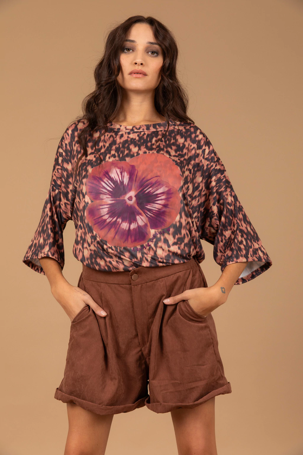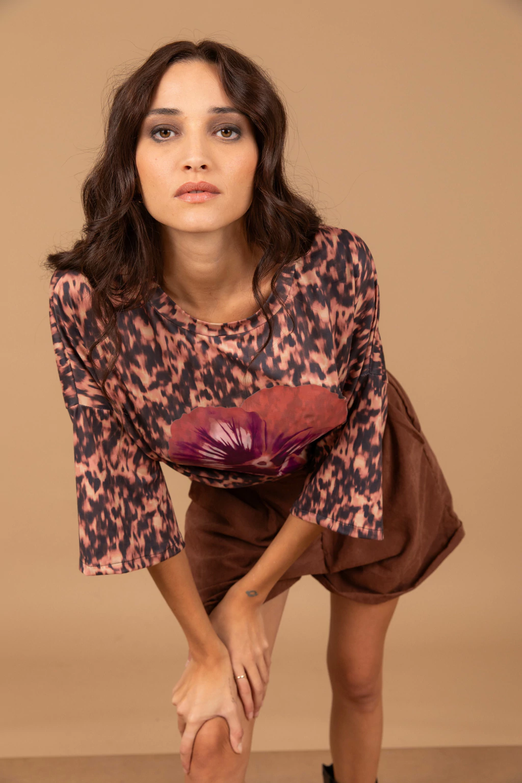 Remerón Confeccionado en supersoft, este remerón "animal print" ofrece una caída y textura suave que abrazan tu piel con comodidad. Se destaca con la estampa de la flor, tambien exclusiva de Annacherise. Ideal para combinar con jeans o shorts, este remerón es perfecto para cualquier ocasión.