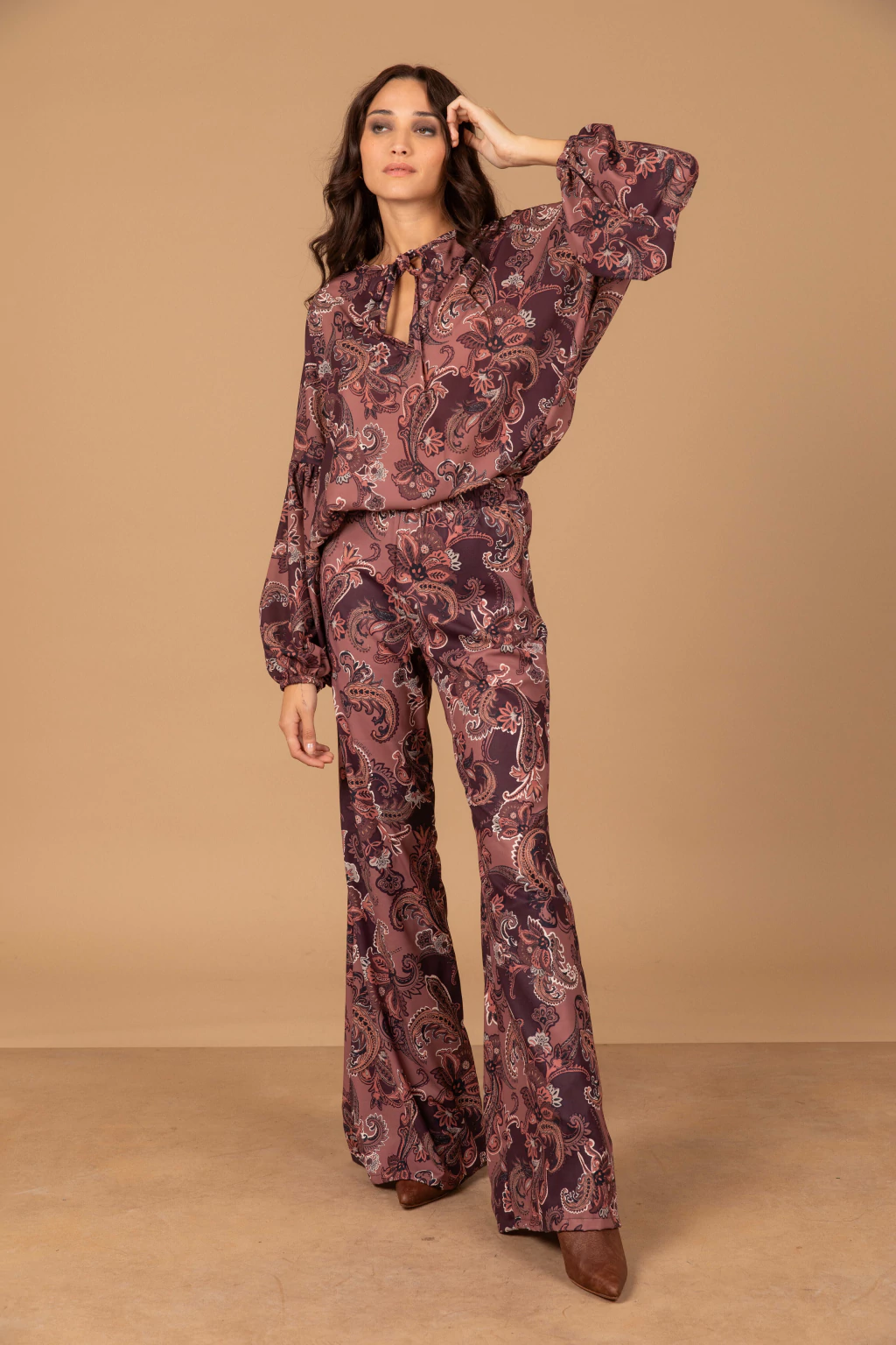 Descubre nuestro set blusa y pantalón que combina la elegancia del estilo bohemio con la comodidad del día a día. estampa exclusiva de Anna&cherise.