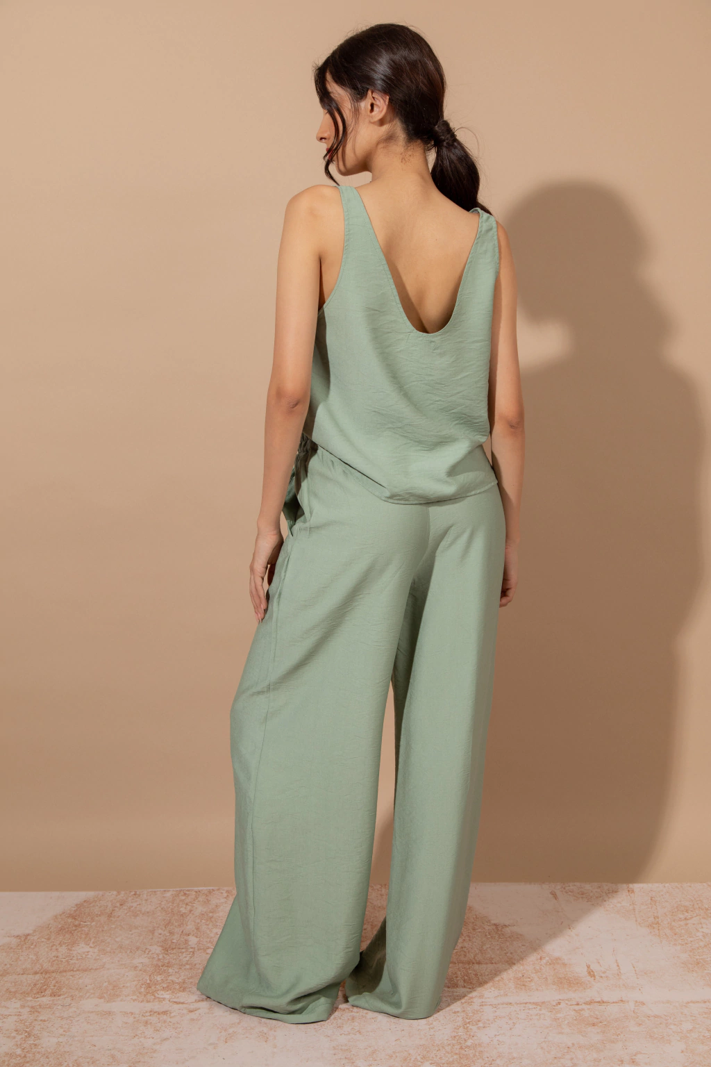 Pantalon Toscana Verde:Pantalón tipo palazzo, confeccionado Rustico Sastrero. Tiene elástico en cintura y bolsillos delanteros. Súper cómodo, fresco e ideal para combinar con la Blusa Toscana ¡'Armá tu set Anna!.