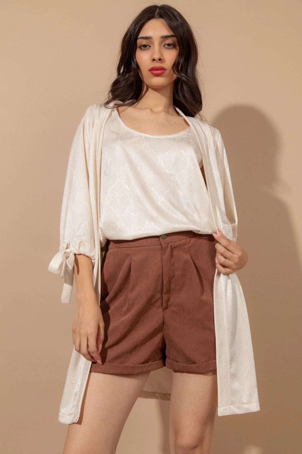 Su color neutro permite combinarlo fácilmente con diferentes prendas, desde jeans hasta faldas, tambien el match perfecto con el Pantalon Albaca en set.