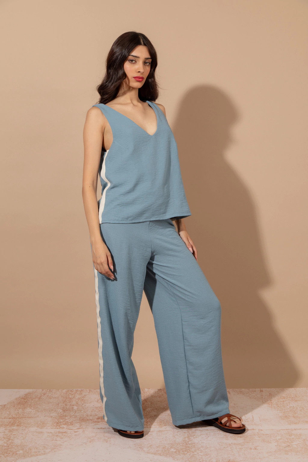 Confeccionado en rayon color Aero, cómodo, versátil, ideal para combinar con el Pantaón Porto en Set, un jean o tu falda favorita. Las tiras de algodón a los costados aportan un detalle único y moderno.
