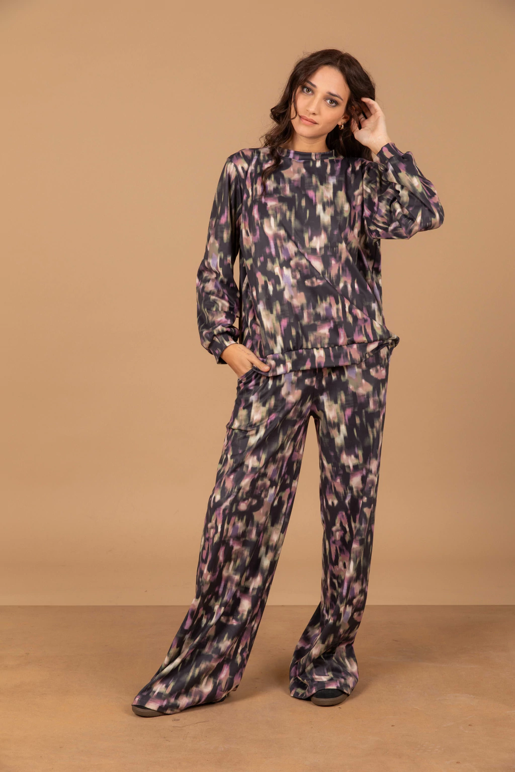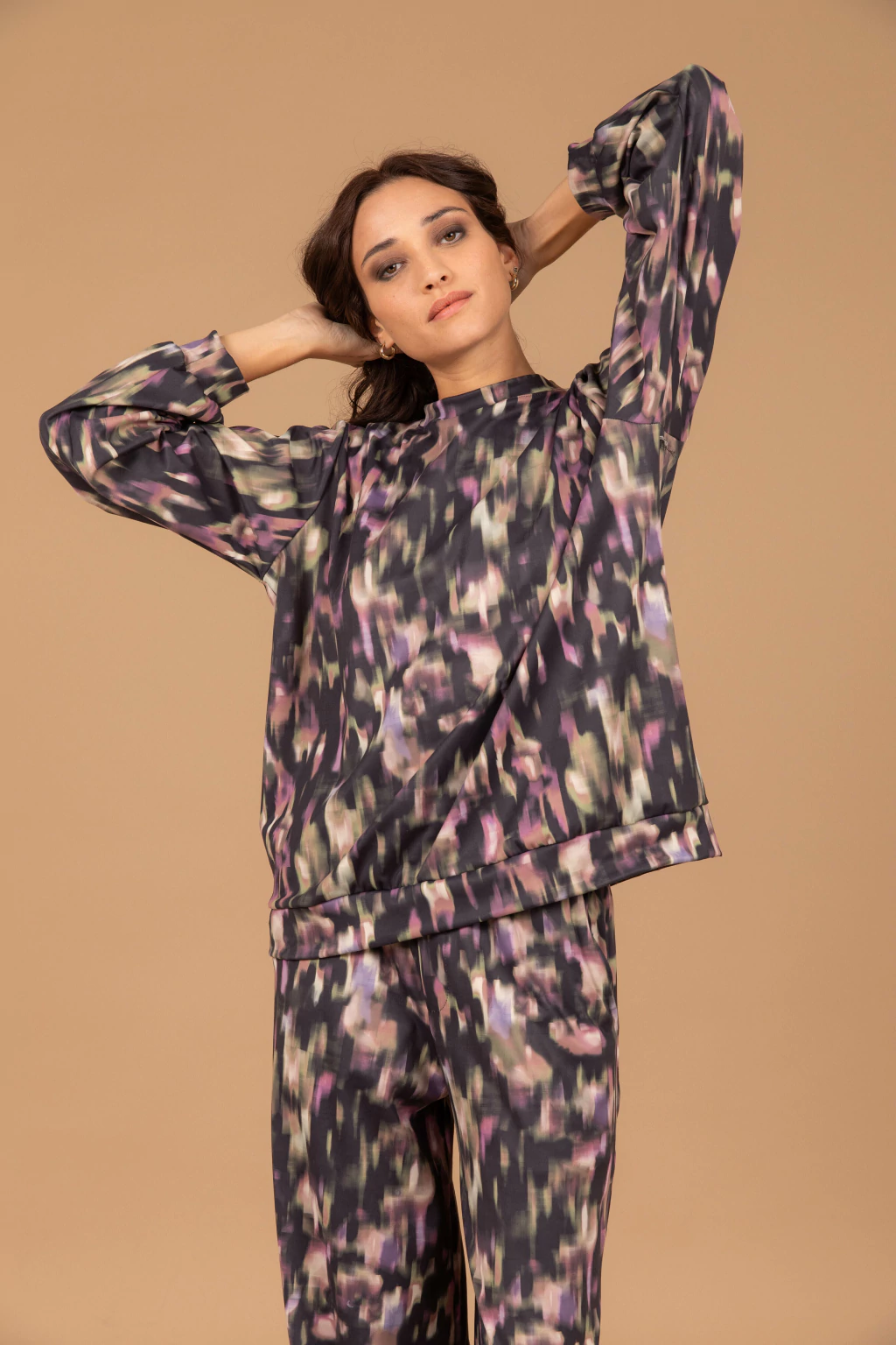 El buzo Cenit es de scuba estampado (estampa propia anna&cherise) el material es suave y tiene peso, abrigado ideal para el otoño invierno y estar canchero.